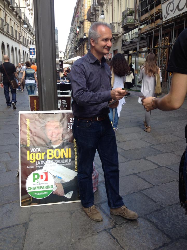 Dalle 11 si unisce a noi anche il candidato del PD alle europee, Alberto Avetta. All’ora di pranzo faccio ancora un giro nella via centrale (c.so Palestro) e poi via verso Torino.